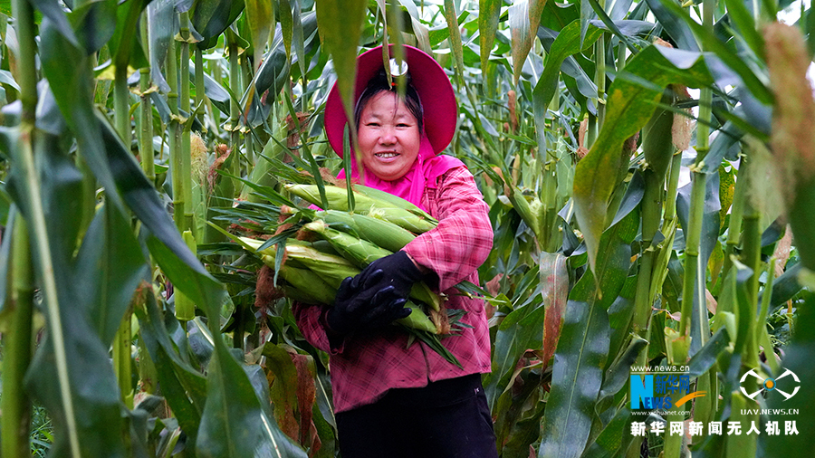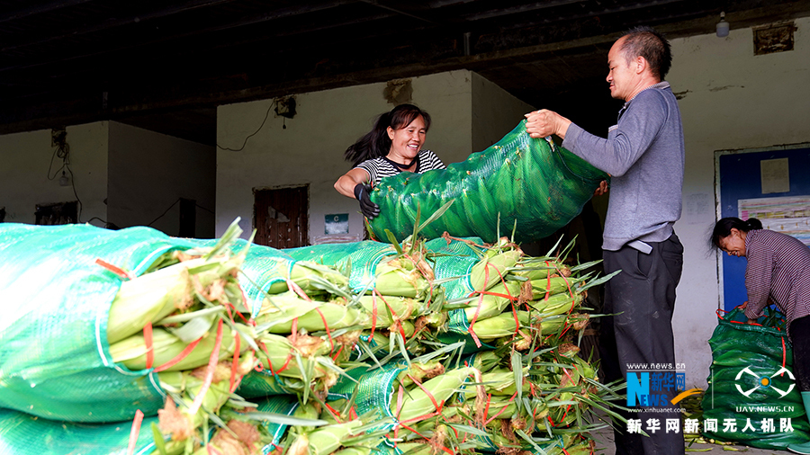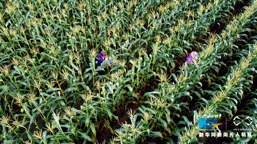 邓屋村千亩玉米进入采收期。新华网发(修伟杰 摄)