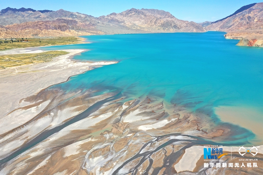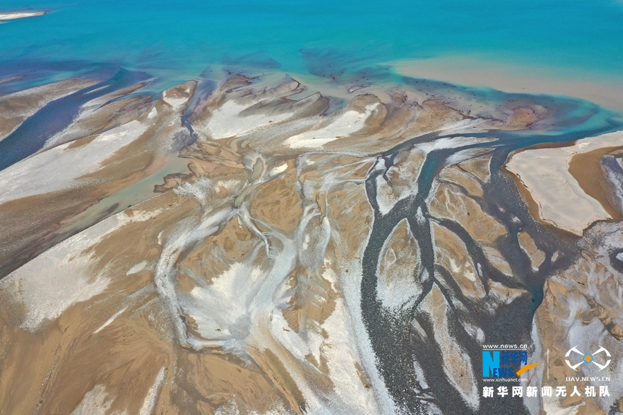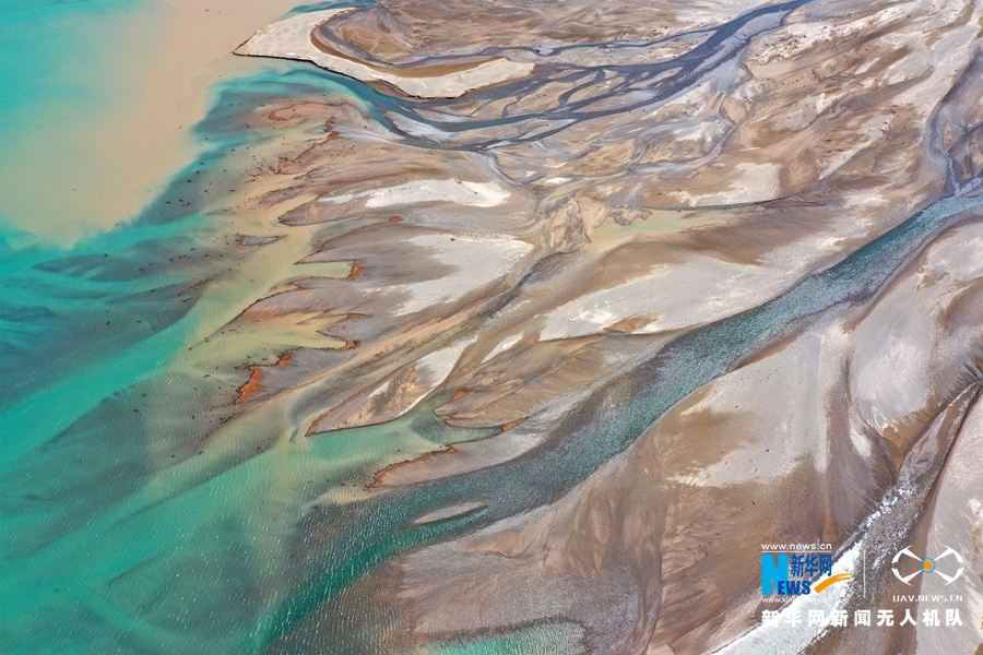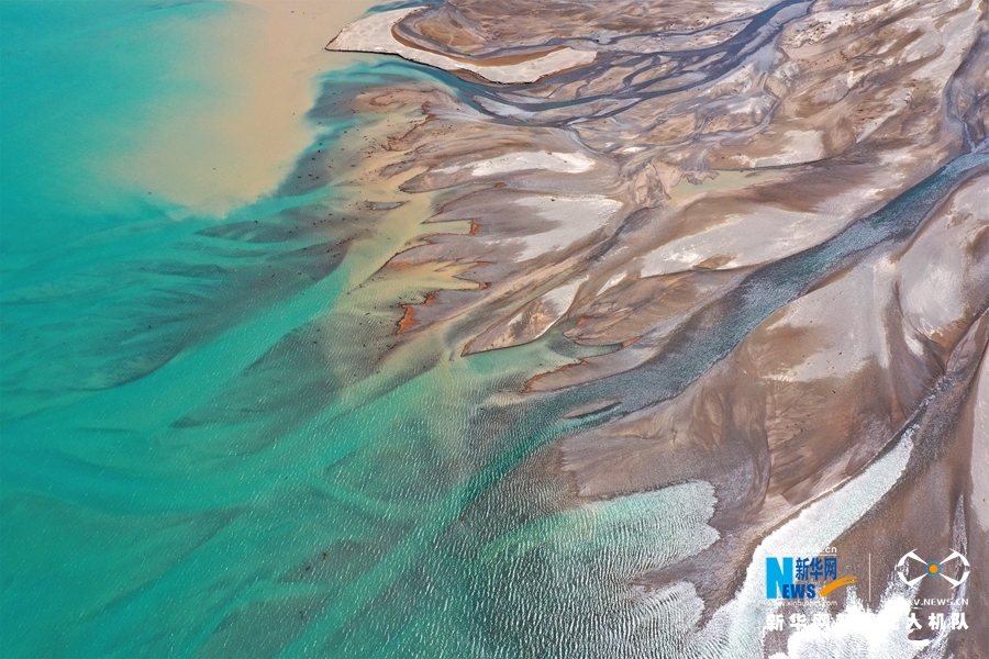 这是近日航拍的甘肃省酒泉市玉门市昌马镇昌马湖风光。新华网发(吴学珍 摄)