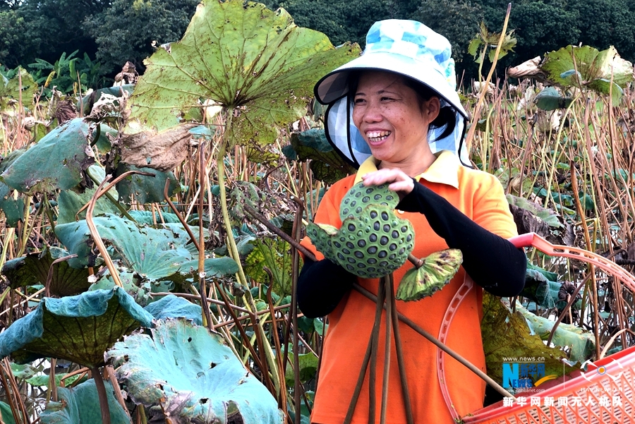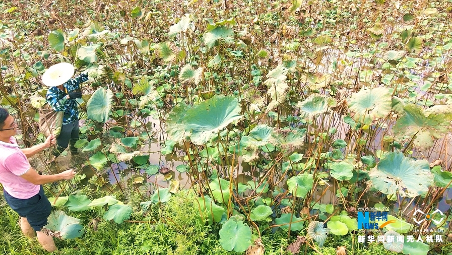 当地通过发展“莲子经济”,将莲产业做成“产业链”,既美了乡村,又富了村民。新华网发(罗素玲摄)