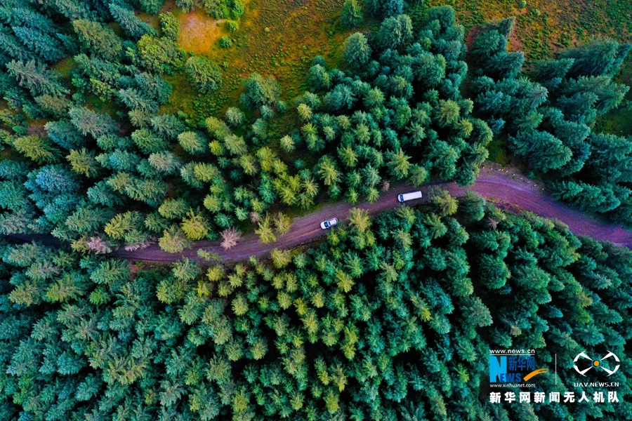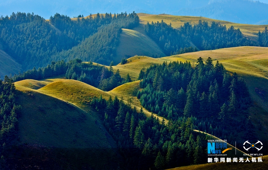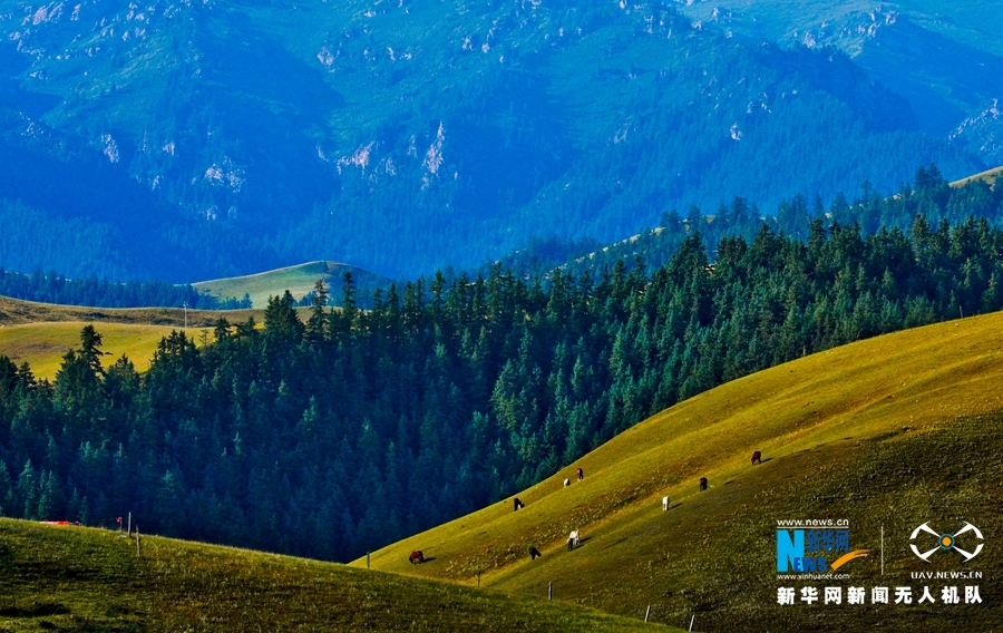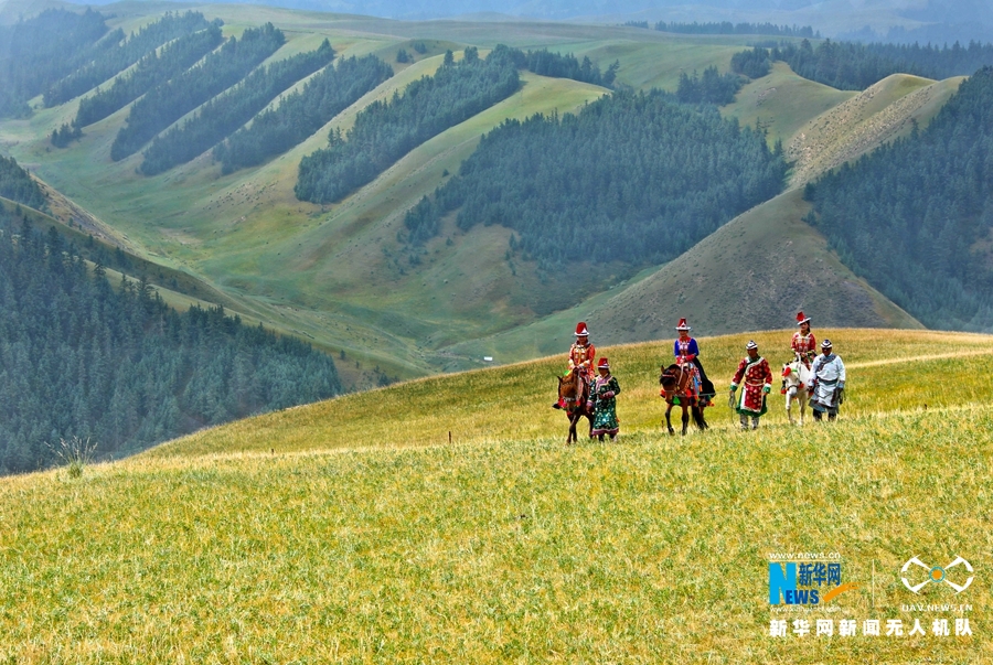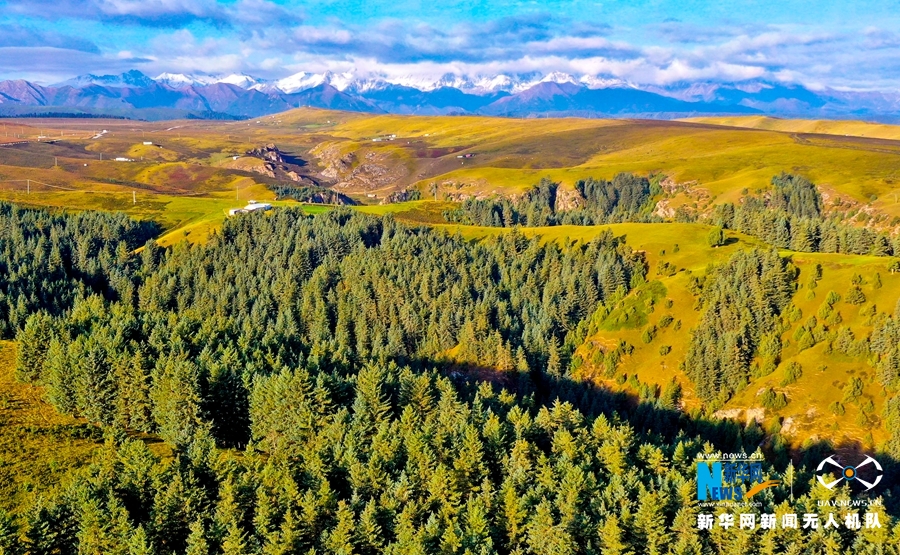 这是8月31日航拍的甘肃省张掖市肃南裕固族自治县康乐草原。新华网发 (王将 摄)