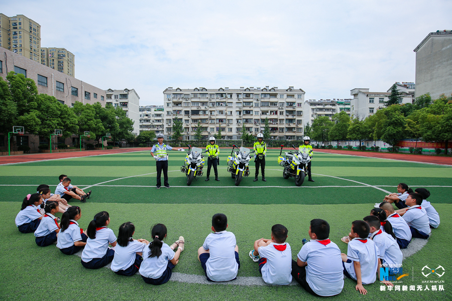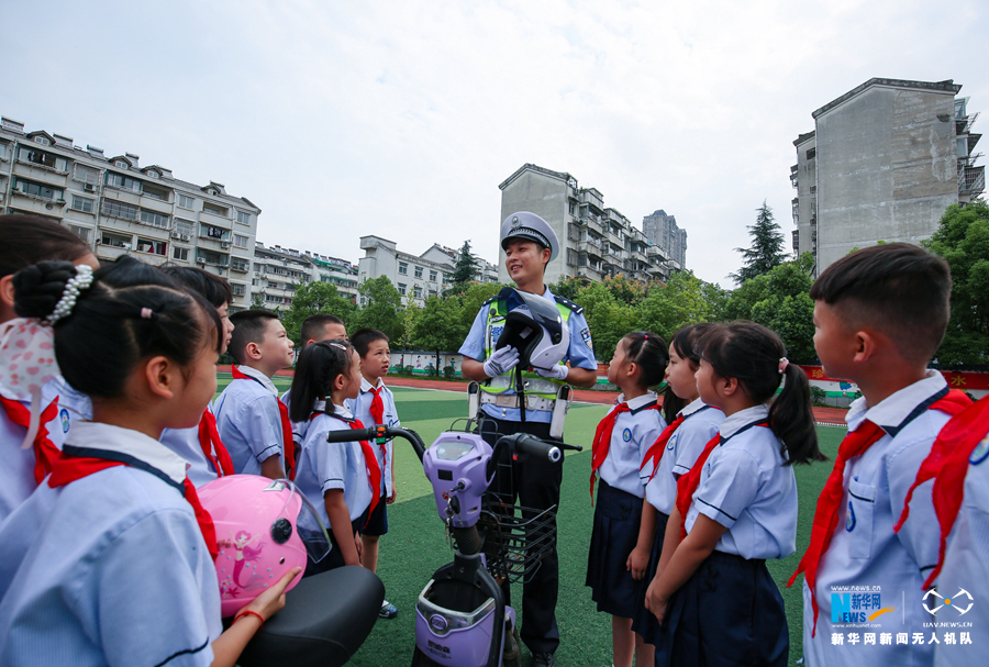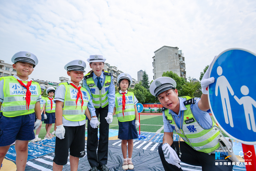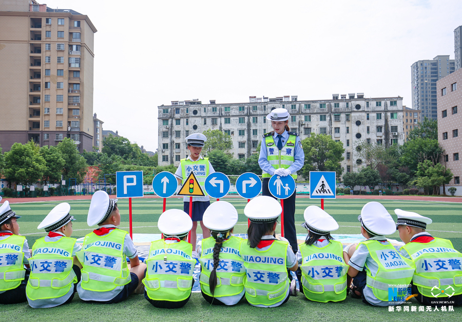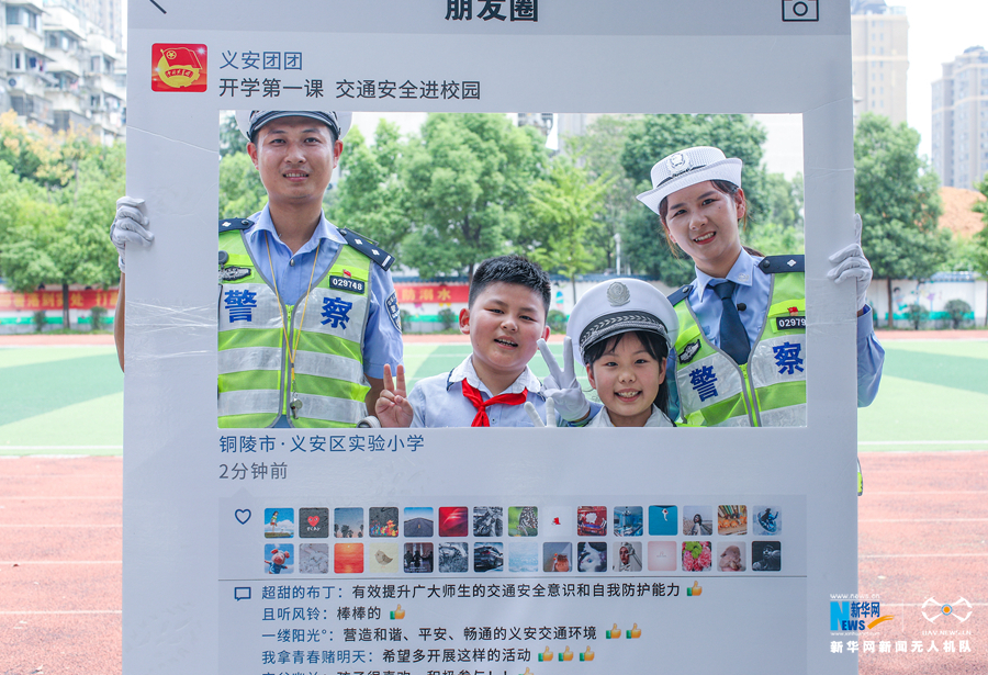 为认真做好秋季开学中小学生交通安全宣传工作,进一步增强中小学生的交通安全意识和自我保护能力,安徽省铜陵市公安局义安分局、义安区团委联合辖区内多所中小学开展“开学第一课 交通安全进校园”活动。交警通过现场讲解一盔一带、识别交通标识、学习交通指挥操、互动游戏交通飞行棋等方式,为学生普及交通安全知识,培养学生的文明交通意识。新华网发(陈晨 摄)