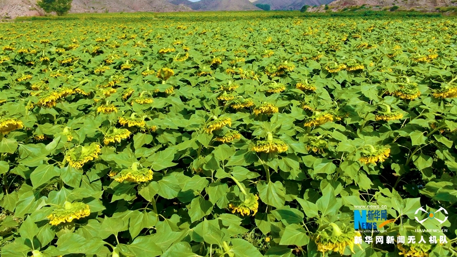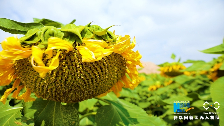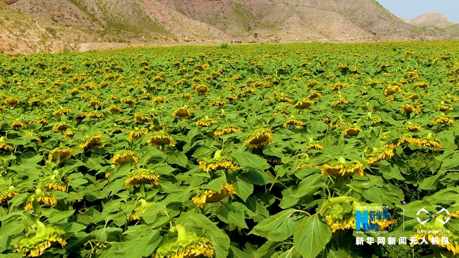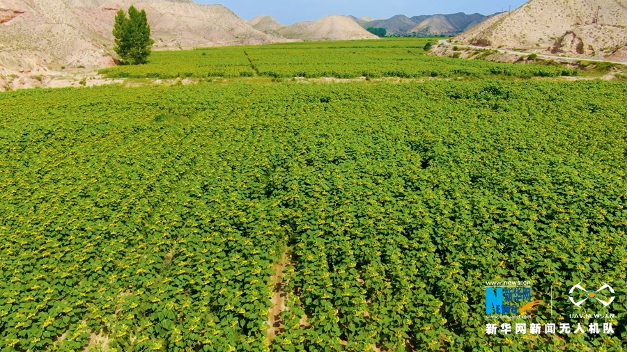 为了有效促进乡村振兴,进一步整合资源,解决土地撂荒问题,壮大集体经济,实行规模化、集约化、产业化经营,当地协调企业集中连片流转土地八百多亩种植葵花。这些葵花将于10月中下旬进入收获季,预计每亩可产葵花籽约200公斤。朵朵向日葵不仅是“金灿灿”的风景,更是实实在在的“钱景”。新华网发(李维平 摄)