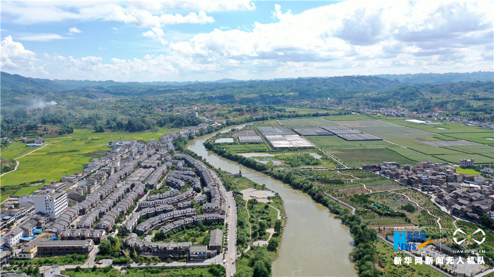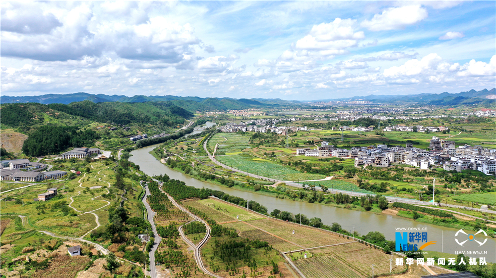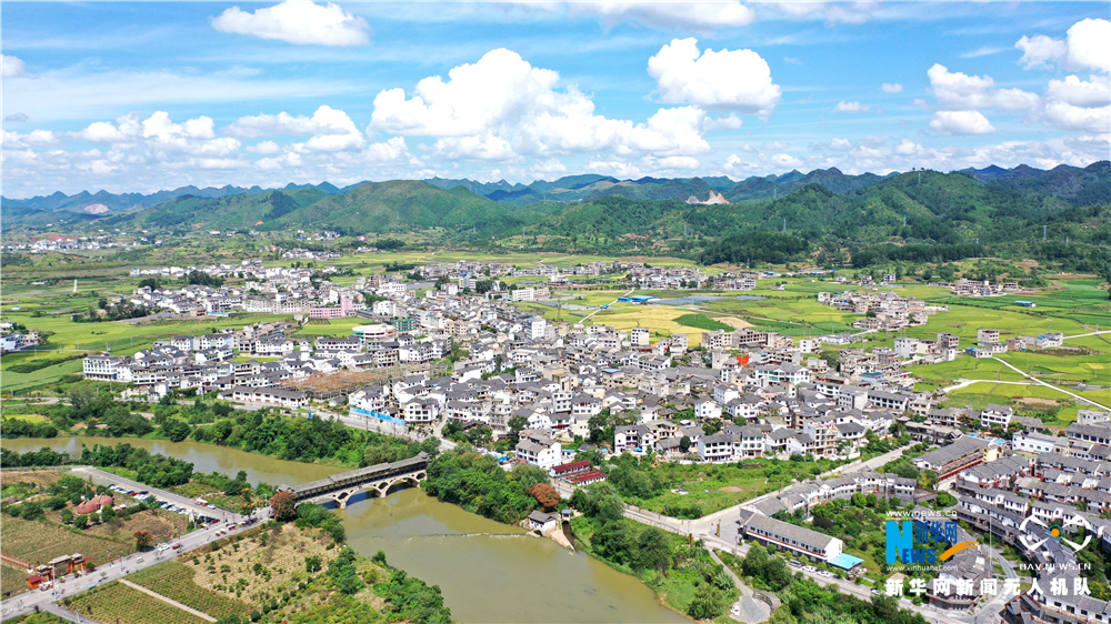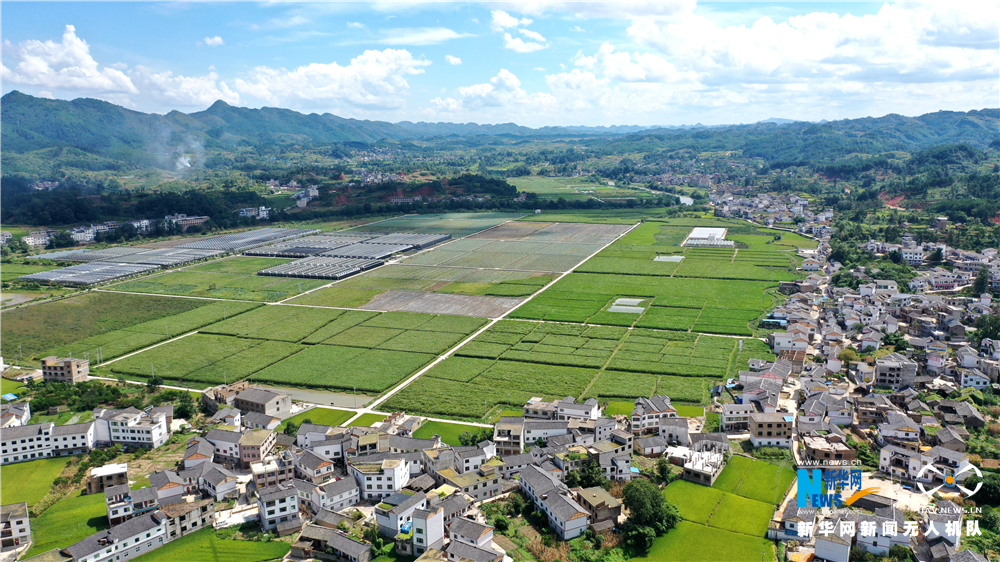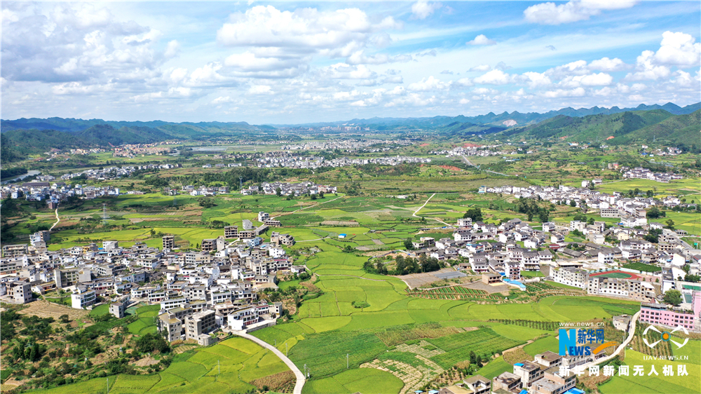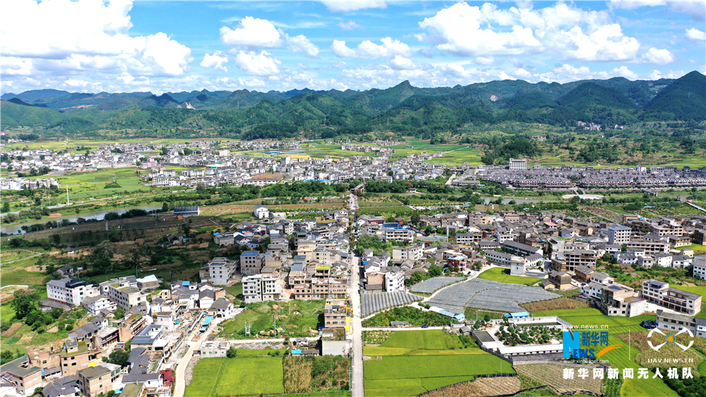 图为8月28日在惠水县好花红镇航拍的美丽乡村一景。新华网 周远钢 摄