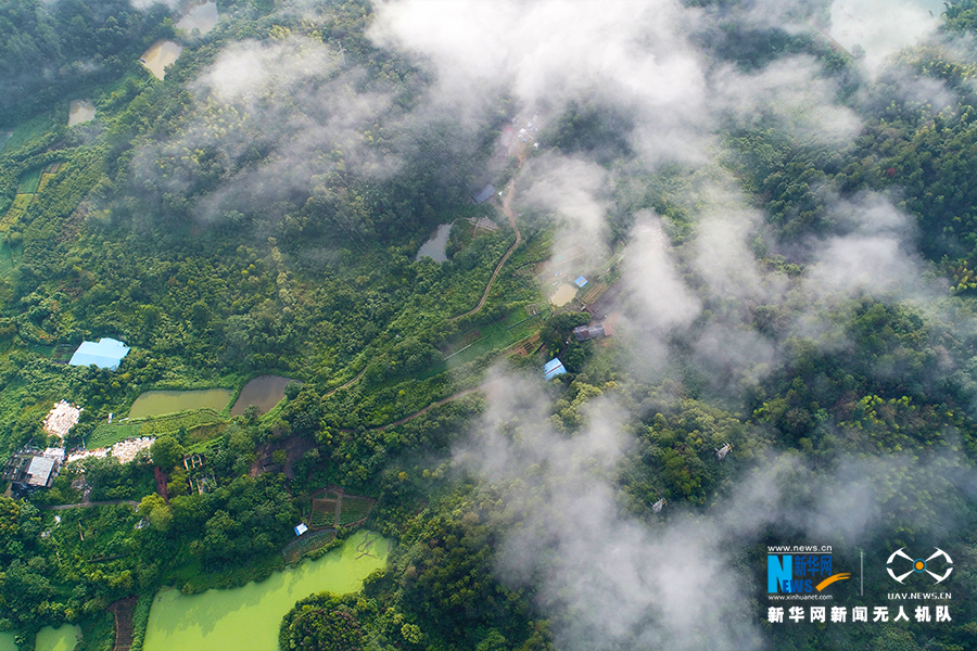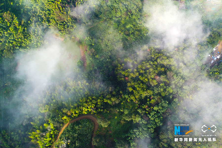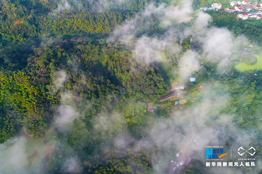 图为湖北省咸宁市潜山脚下云雾环绕。新华网发 赵忠志摄