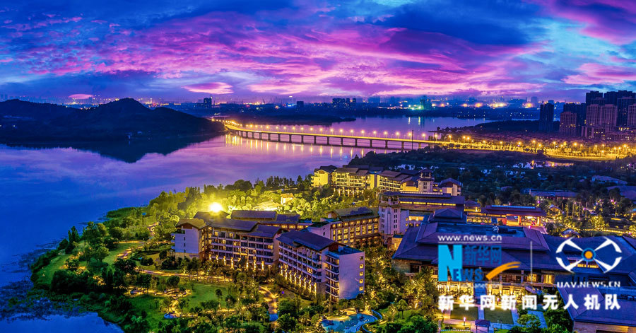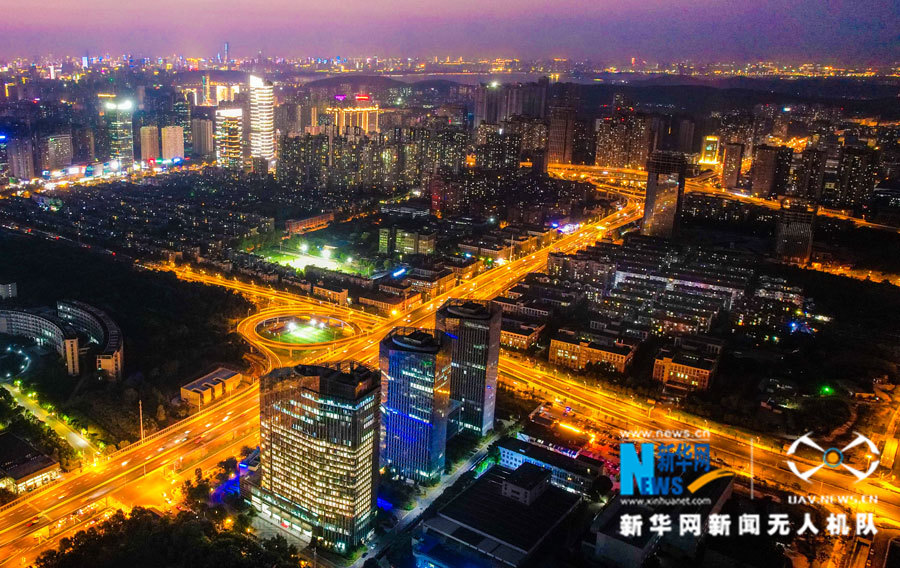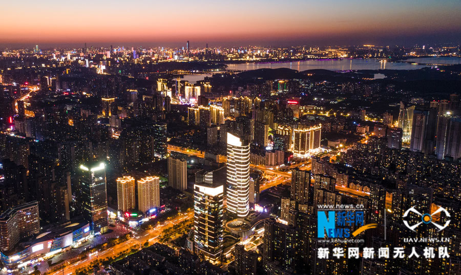 航拍光谷夜景。