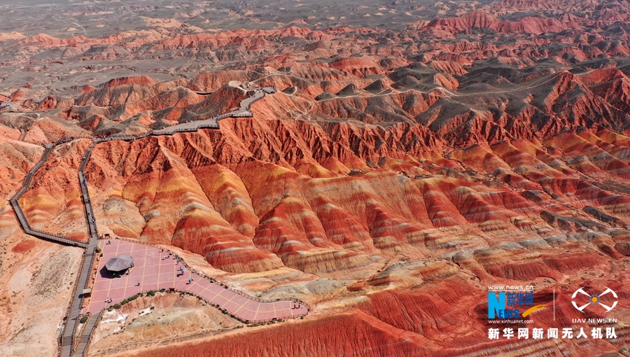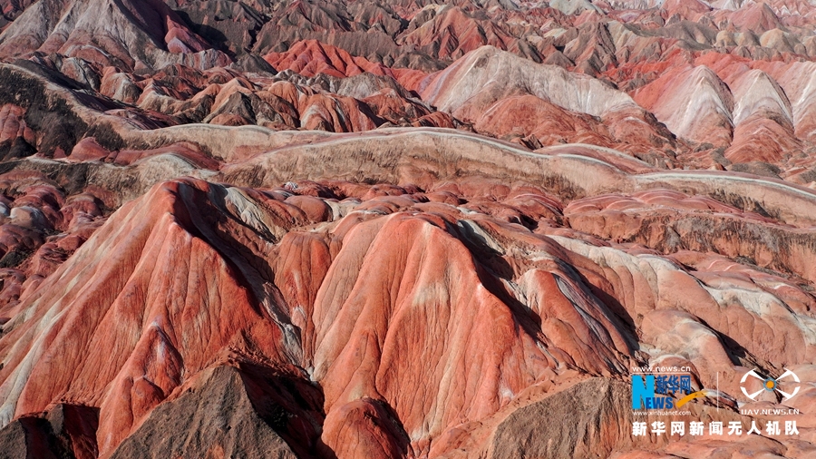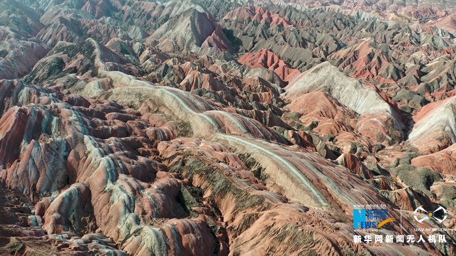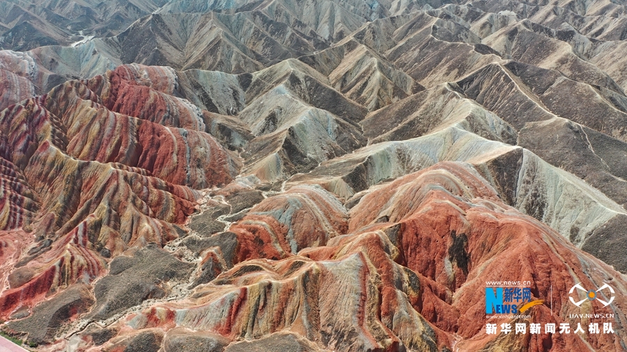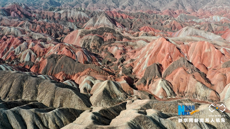 这是近日航拍的甘肃省张掖七彩丹霞景区。新华网发 (杨永伟 摄)