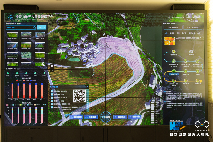 金秋九月的御临河畔,飘来阵阵果香。今年8月举行的智博会上,由重庆市农业农村委员会指导,重庆市农业科学院信息所牵头研发的“丘陵山地无人果园管理平台”面向全社会发布。运用了该管理平台的青龙村2000亩果园,也由此成为了全国首个丘陵山地数字化无人果园。该平台实现了数据全覆盖、环境监测全天候、精准管护全过程、农机协同全自动。同时,依靠智能传感、模式识别、自动避障等技术,结合三维精准数字地图,高效协同无人对靶喷药机器人、无人除草机器人、无人采摘机器人等智能农机,实现农机数据的互联互通、作业规划、统一调度,从而进行大范围、高精度、高效率的自主作业。
