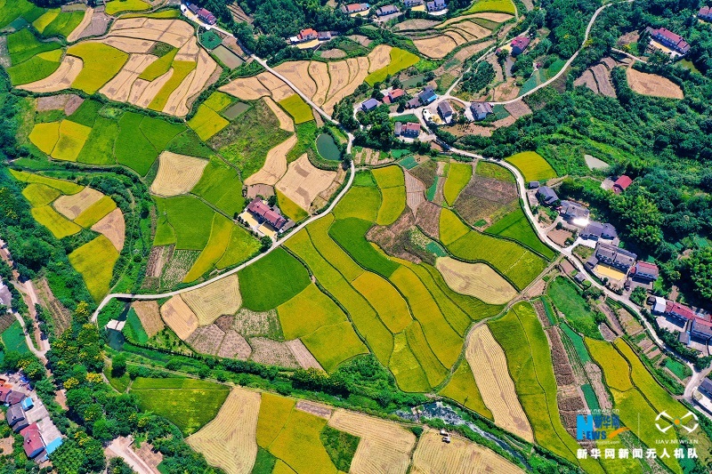 图为航拍宜都市松木坪镇江家湾村柳林河优质中稻基地。朱灿义摄 新华网发