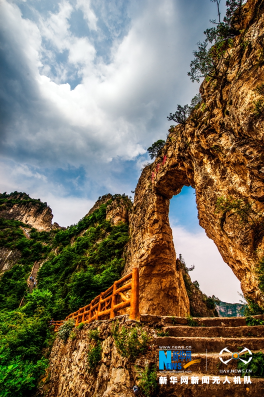 壁立千仞的奇峰怪石、郁郁葱葱的莽莽林海、飞珠溅玉的悬泉飞瀑、妙趣横生的岩溶桥洞……走进太行山大峡谷,犹如步入百里画廊,各色奇景令人目不暇接。