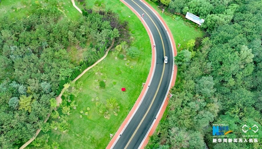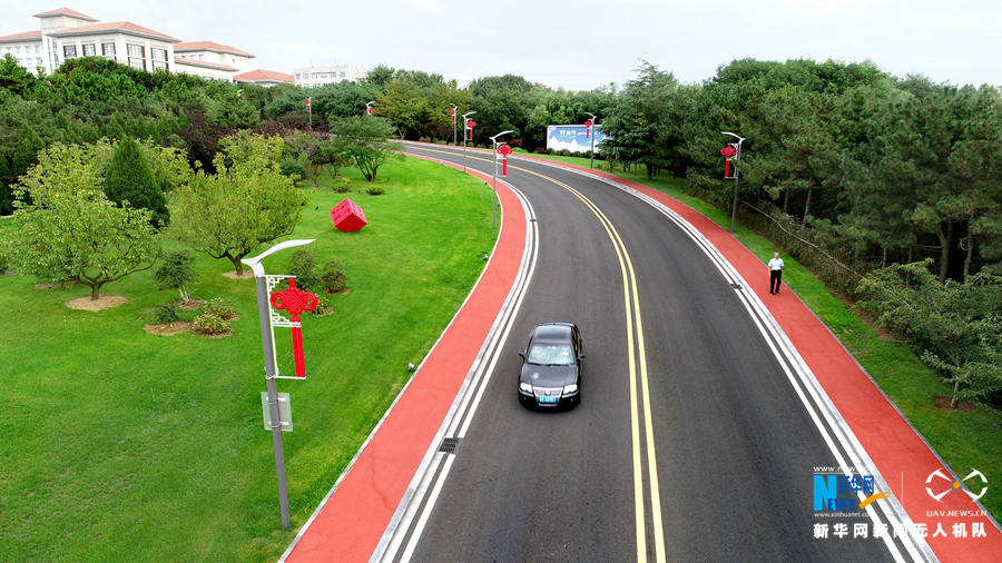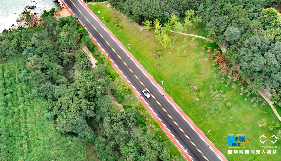9月17日,遍布山东荣成各地的城乡公路,让行人如走在画卷中。新华网发 (张进刚 摄)