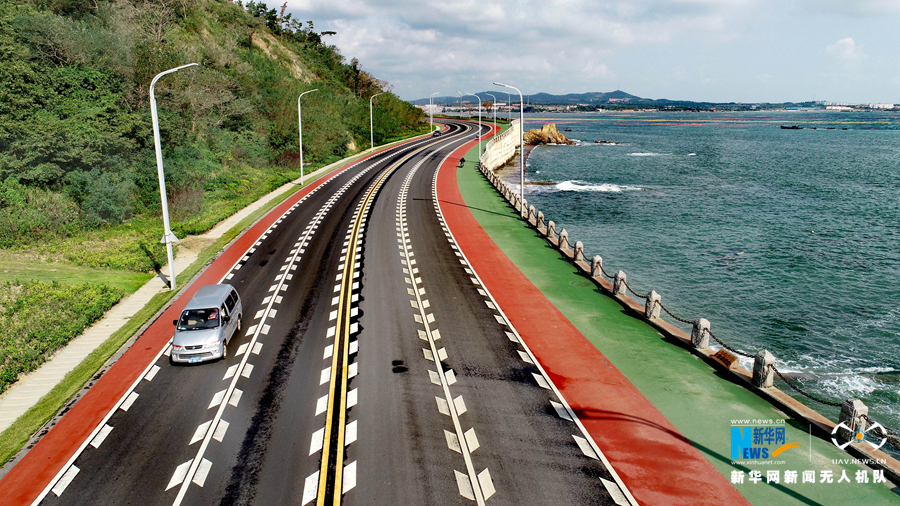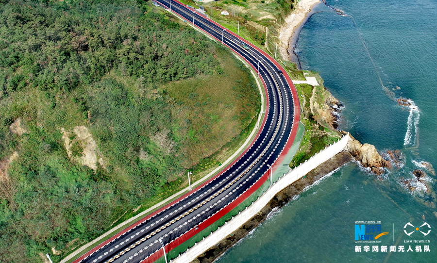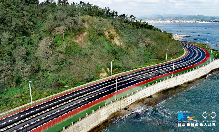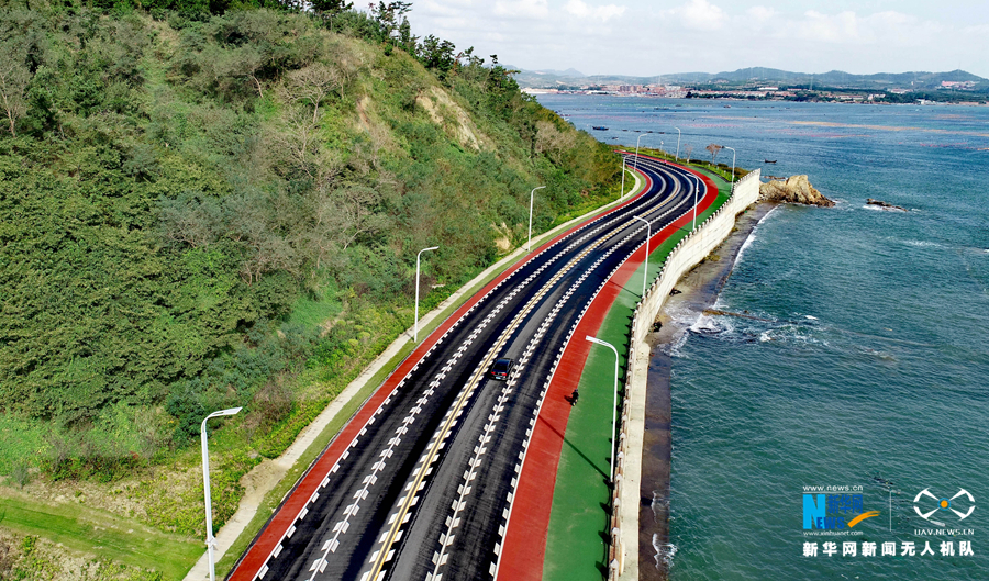 遍布山东荣成各地的城乡公路,让行人如走在画卷中。新华网发 (张进刚 摄)
