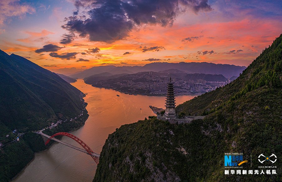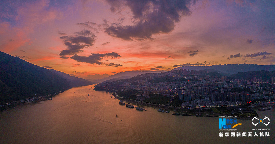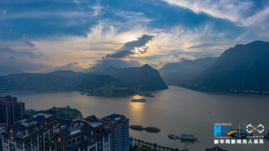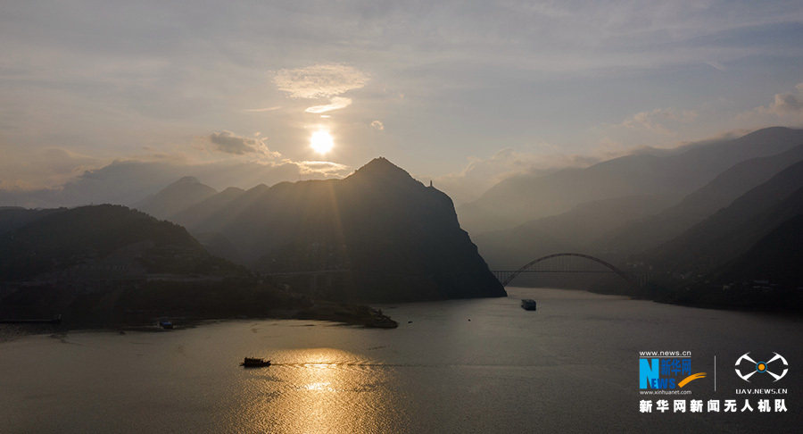 时值秋季,长江三峡地区除了巫山云雨的盛景,也不乏秋高气爽的美景。从清晨到日暮,从朝霞到落霞,都展现出不一样的韵味,跟随新华网无人机“瞰”巫山好风景。图为巫山夕阳。新华网发(朱云平 摄)