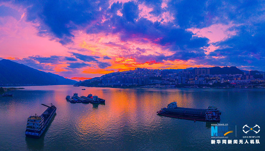 时值秋季,长江三峡地区除了巫山云雨的盛景,也不乏秋高气爽的美景。从清晨到日暮,从朝霞到落霞,都展现出不一样的韵味,跟随新华网无人机“瞰”巫山好风景。图为巫山清晨,朝霞满天。新华网发(朱云平 摄)