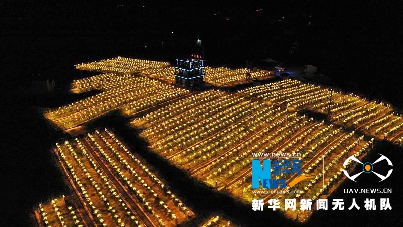 每到夜晚,2400盏增产光谱灯照亮夜空,星光和灯光交相辉映,不仅兴旺了产业,也使这里成为游客争相打卡的星空网红地。(吴邱叠、谢苗苗、姜娟)
