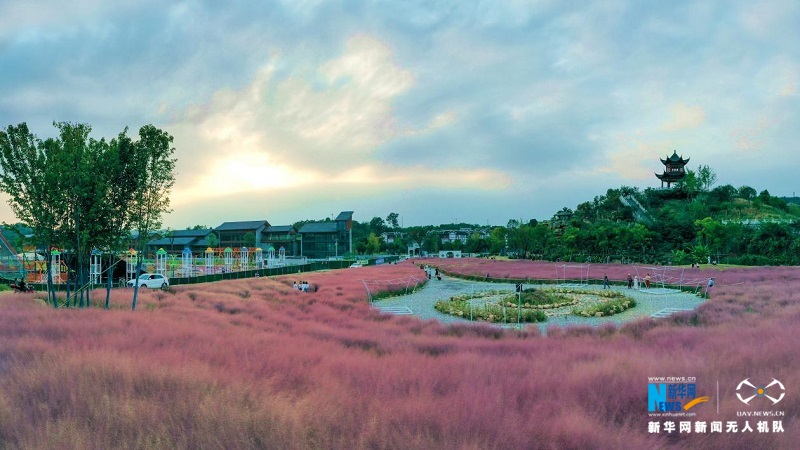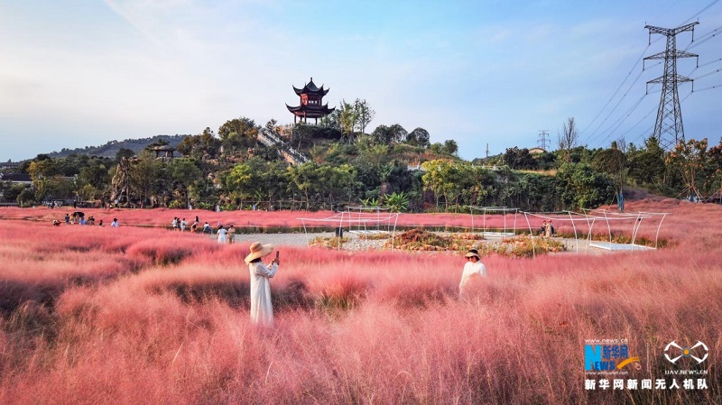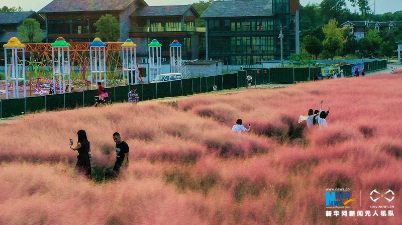 湖北省宜昌市宜都市高坝洲镇青林寺村粉黛乱子草绚烂绽放。朱灿义摄 新华网发