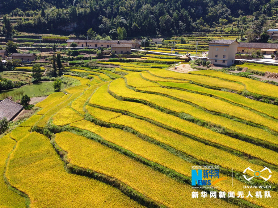 近期,湖北省恩施州巴东县东瀼口镇牛洞坪村晚稻成熟,梯田金黄田园如画。