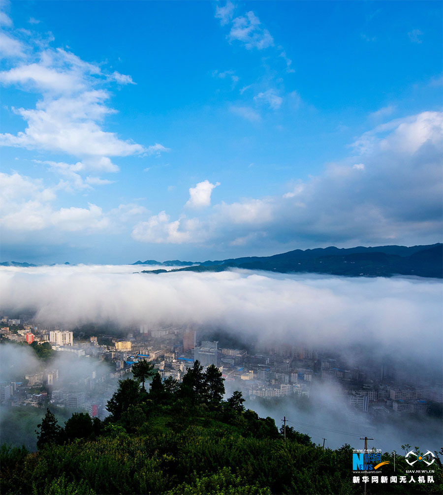 图为云海中的咸丰县。新华网发