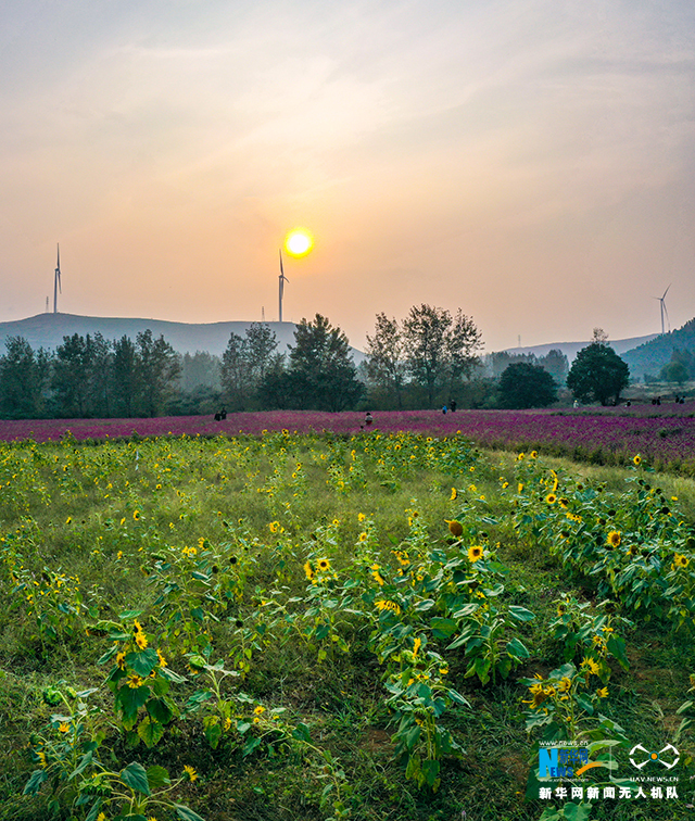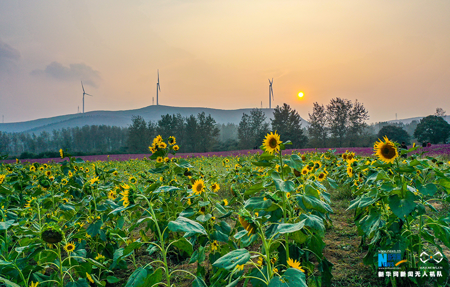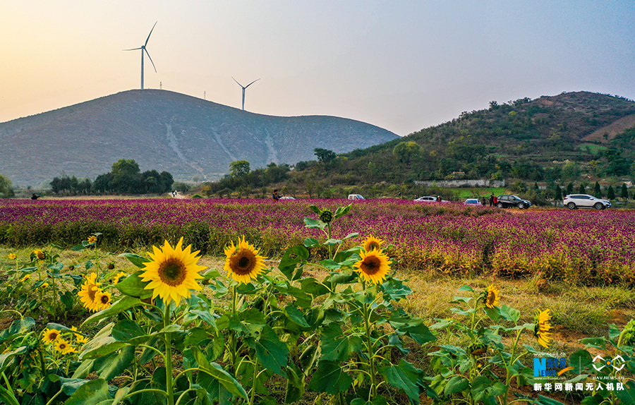 10月21日,安徽省宿州市符离集镇武山子村繁花似锦,吸引游客前来赏花游玩。新华网发(王文 摄)