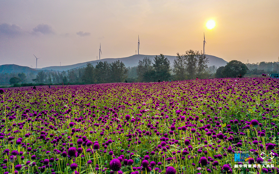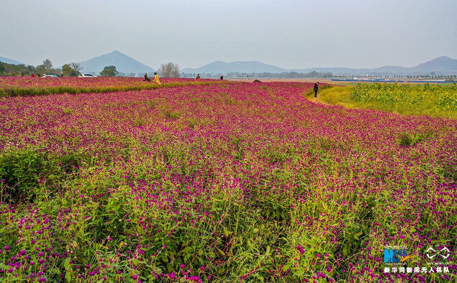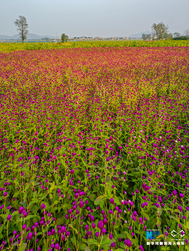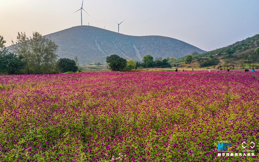 10月21日,安徽省宿州市符离集镇武山子村,大面积的千日红陆续盛开。新华网发(王文 摄)