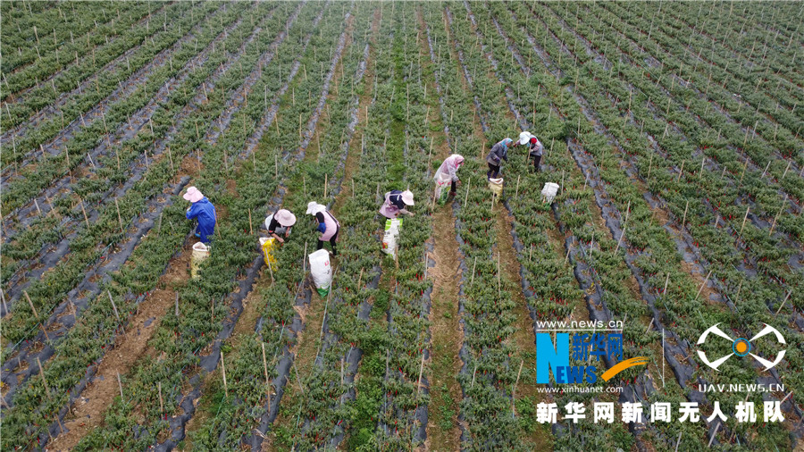连日来,位于云南省曲靖市沾益区盘江镇中村的100余亩辣椒喜获丰收,村民在地里忙着采摘,供应省内外市场。近年来,盘江镇积极调整农业产业结构,依托当地资源优势,通过流转土地大力发展蔬菜、水果等特色种植,有效提升土地产出效益,促进农民增收,助推乡村振兴。新华网发(杨俊鹏摄影报道)