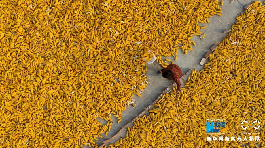 村民正在晾晒玉米。新华网 发(兰立强 摄)