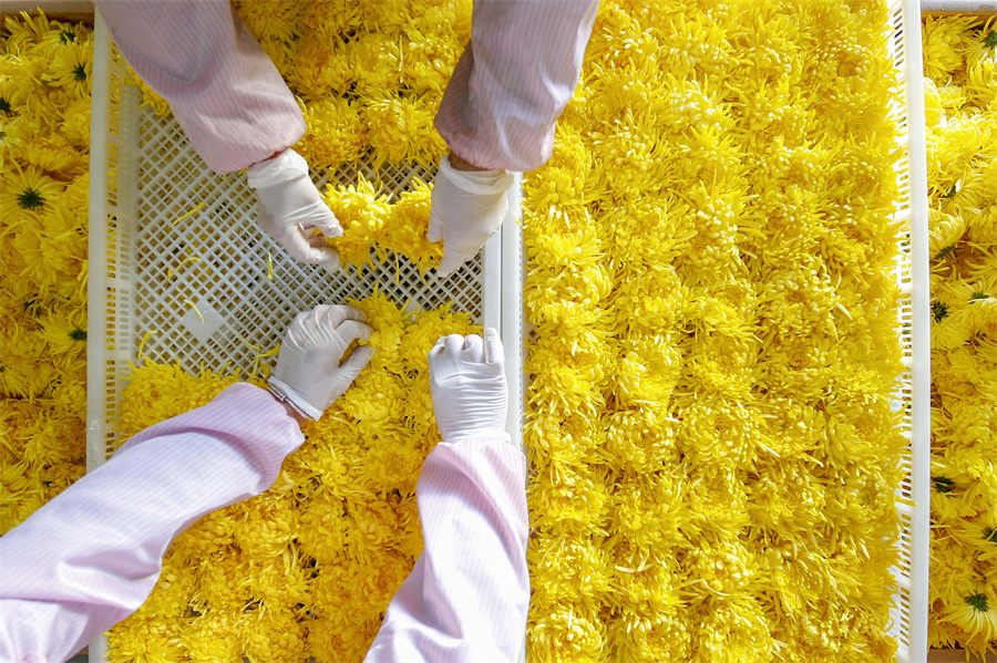 近年来,安徽省黄山市徽州区优化农业产业结构,积极发展菊花经济,菊花种植面积达1400亩,带动1000余户菊农增收,年户均增收6000余元,助推乡村振兴。pagebreak
