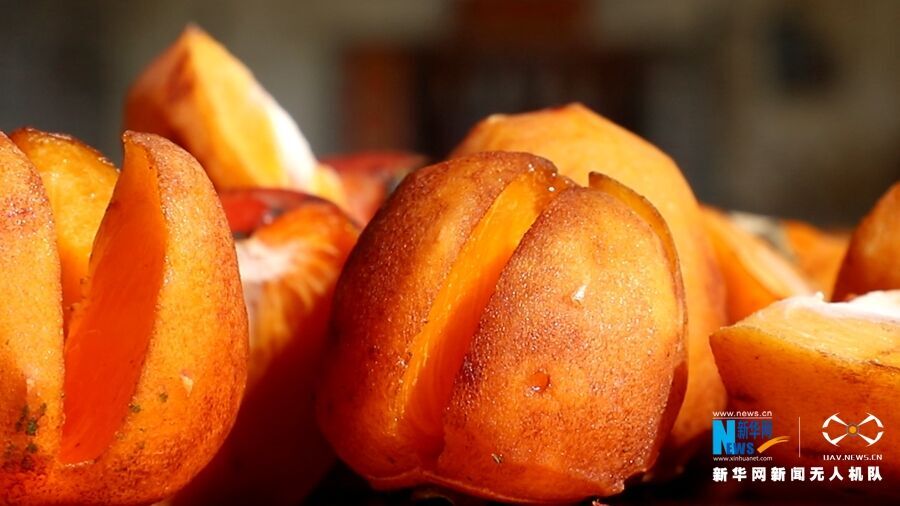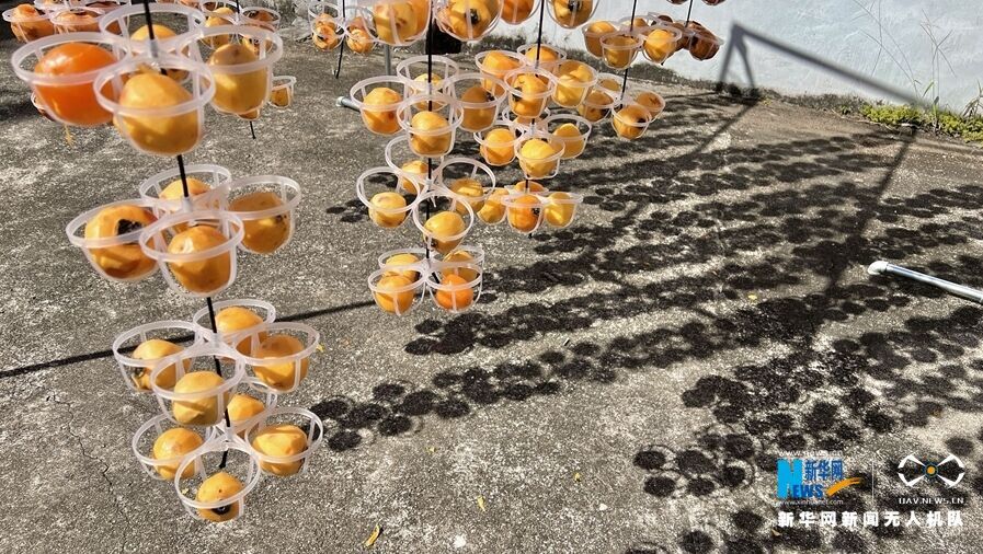 冬日暖阳,在广州市从化区江埔街上罗村,正是柿子晾晒好时节。新华网发(罗素玲摄)