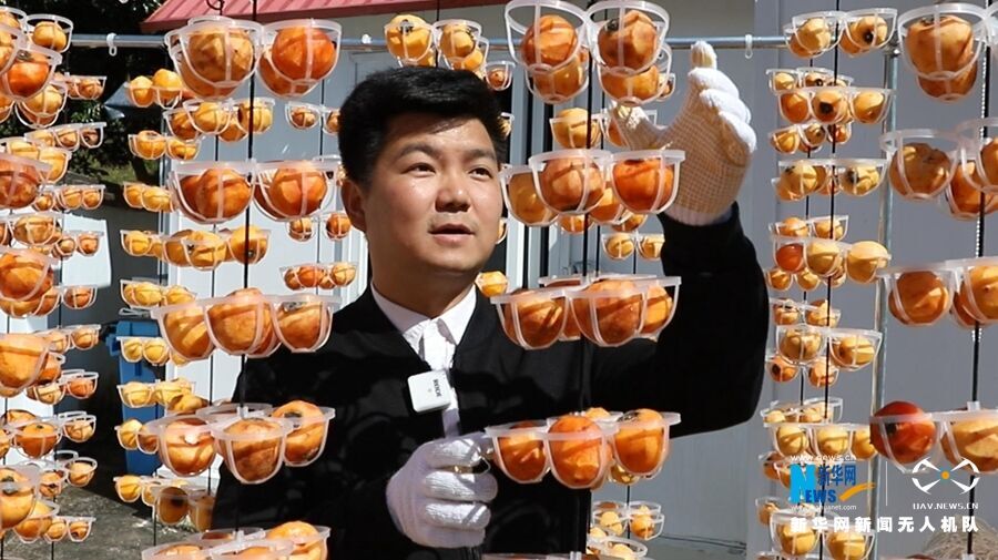 广州市从化区江埔街上罗村创业青年邱国健创新晒柿干方式。新华网发(罗素玲摄)