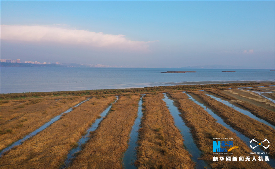 12月7日航拍的贵州威宁草海冬日风光。新华网 卢志佳 摄