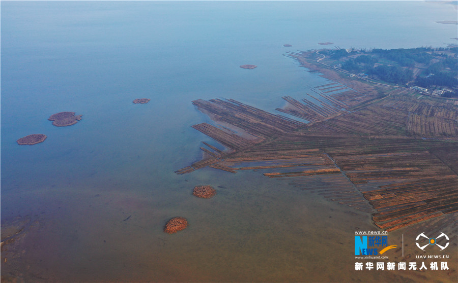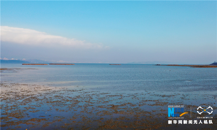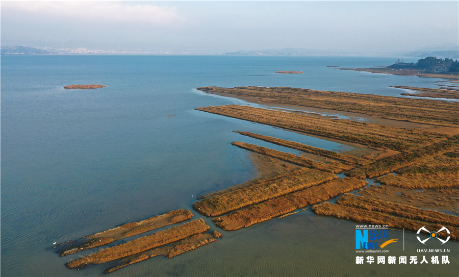 12月7日在威宁草海航拍的候鸟在水面栖息场景。新华网 卢志佳 摄