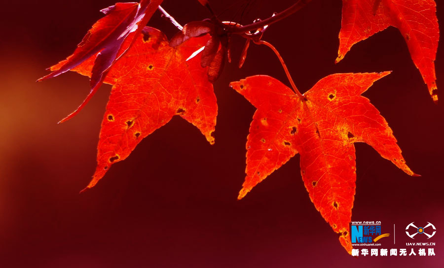暖阳下的枫叶,红似“火”。新华网发(佘建新摄)