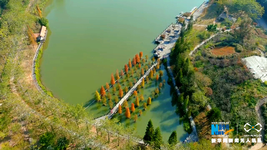 原本青秀的山峦,变得色彩斑斓,为冬日带来一抹亮丽的“枫”景线。新华网发(钟家珠摄)