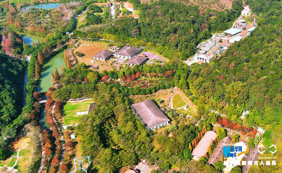 冬日,地处清远市佛冈县的田野绿世界枫树披上“红妆”。新华网发(钟家珠摄)