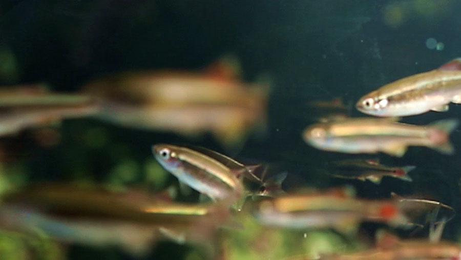 唐鱼又名白云山金丝鱼,鱼体呈梭形,全长3至4厘米,大眼。新华网发(罗素玲摄)