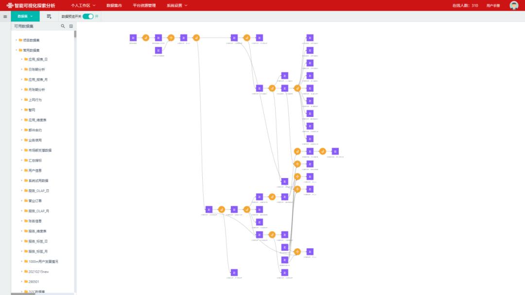 在面对需要梳理业务逻辑、实现交互式探索分析的复杂数据分析需求时,可视化自助平台依然可以通过拖拽式操作,构建数据分析流,对数据分析算法模型进行添加、删除、修改等操作。让业务人员可以清楚地看到数据分析流程,实现数据分析的所见即所得。