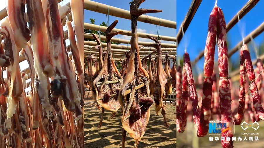 舌尖上的年味:实拍农村晾晒腊味场景壮观